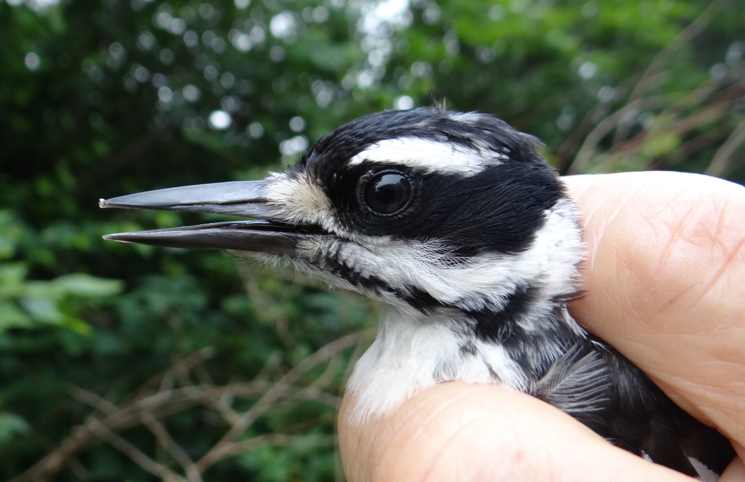 As fledgling birds disperse from nests to explore the rich Little Tennessee River bottom land habitat, SARR MAPS station volunteers have feasted on the great views and diversity of young birds. American Redstart and Chestnut-sided Warblers have recently been banded for the first time this season at Cowee Mounds, while roving gangs of young-of-the-year Blue-gray Gnatcatchers kept the net crew hopping. Tessentee MAPS species richness topped all locations with 18 different species banded last week, including young Black-and-White, Worm-eating and Hooded Warblers. And the higher-altitude breeders like Canada Warbler, Least Flycatchers and Slate-colored Juncos are still producing fledglings at Big Bald MAPS, making for the highest station totals in several years.
